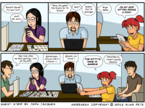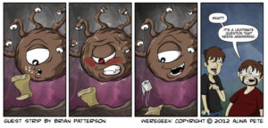 I’m sure the art speaks for itself, but today’s guest strip is by Jeph Jacques, of Questionable Content. He has very kindly taken time away from his new kitty (KITTY!!) and from drawing indie hipsters in space to draw some geeks sitting around a gaming table. (Something he seems to have some experience with!) I … Read more